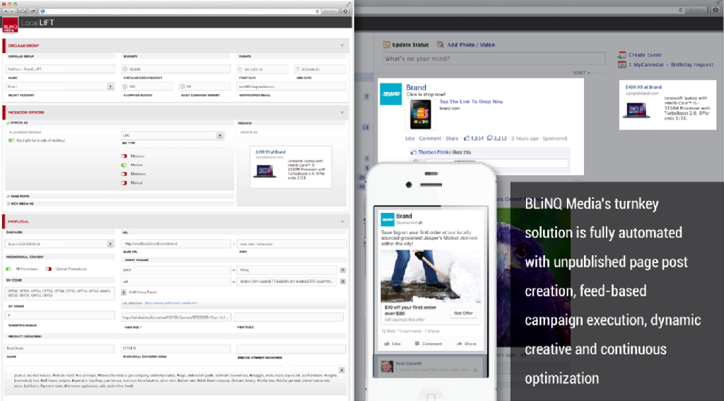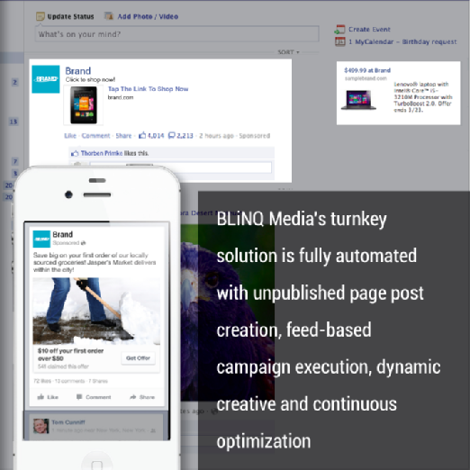 BLiNQ Media is the leading global innovator of Social Engagement Advertising (SM) solutions for agencies and big brands. BLiNQ’s technology and managed services deliver quality brand engagement at scale by driving rapid, measurable results with unparalleled audience insights. The BLiNQ Ad Management (BAM) platform fully automates complex campaign planning, setup, management, optimization and insights. Since 2008, BLiNQ has managed campaigns for more than 600 of the world’s largest advertisers.